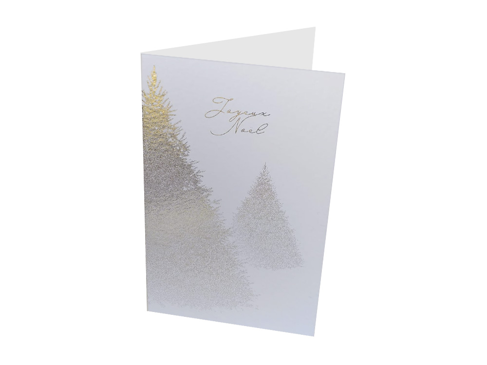 Description précise | Papier: Softweiss 300 gm2 - papier épais et mat. Texturé (légèrement martelé sur une face). Impression doré. |